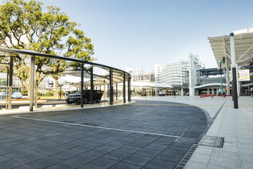 駅前広場ということもあり、色んな方が訪れて利用しやすい300角の大判のレンガを使用しております。