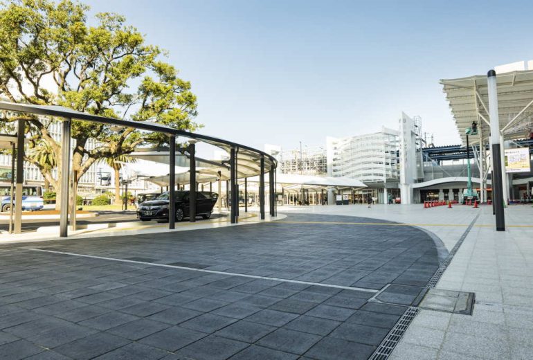宮崎県延岡市の北側に位置する「道の駅北川はゆま」。以前の場所に引き続き、歩道に新燃れんがW230のLE色のレンガをご使用いただきました。LEは、オレンジ系の色で、明るいイメージになっています。