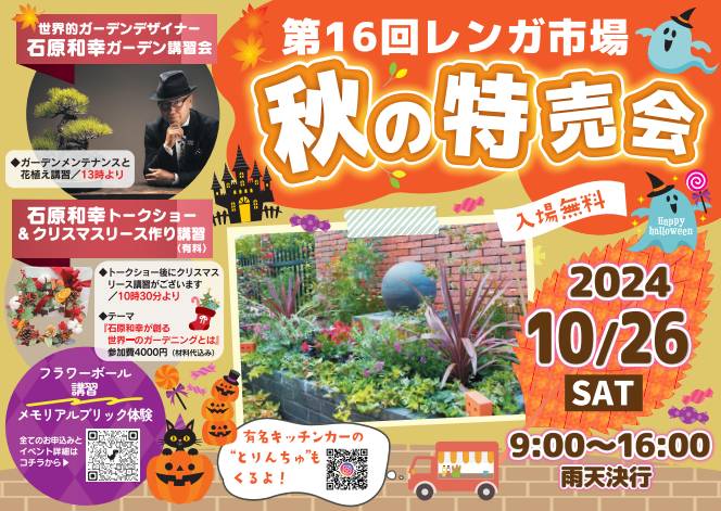 レンガ以外にも、石原和幸氏によるガーデン講習会 クリスマスリース作り講習をはじめ、イベント盛り沢山でお待ちしております。